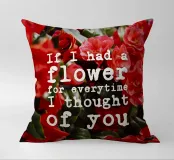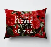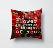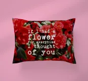 Una poesia visiva di colori ed emozioni: fiori rossi brillanti su uno sfondo verde lussureggiante fanno da sfondo alla scritta bianca "If I had a flower for everytime I thought of you" (Se avessi un fiore per ogni volta che ho pensato a te), una frase che oscilla come un pensiero silenzioso tra nostalgia e affetto. La composizione vive del contrasto tra l'intensità floreale e la chiarezza tipografica. Sembra un momento catturato, personale e universale allo stesso tempo.
