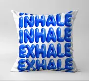 Un design tipografico rilassante con le parole "Inhale Exhale". Pulito, minimale e bilanciato, ricorda di respirare profondamente e di essere presenti.