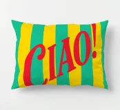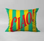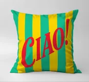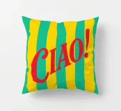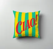 Poster pop art dal fascino italiano: il rosso "CIAO!" salta all'occhio su allegre strisce gialle e turchesi. Una dichiarazione di stile per la cucina, il corridoio o l'ufficio, ideale per chiunque voglia salutare (o salutare) la vita con una strizzatina d'occhio. Questa grafica combina fascino retrò, colori estivi e forza tipografica.
