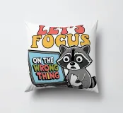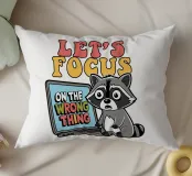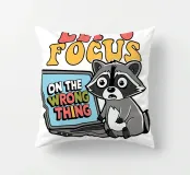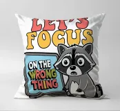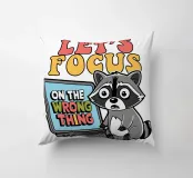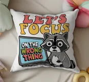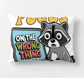 Un procione dei cartoni animati siede davanti a un computer portatile aperto con un testo colorato che recita: "Concentriamoci sulla cosa sbagliata".