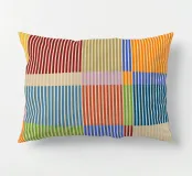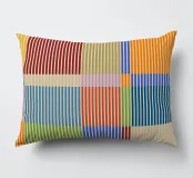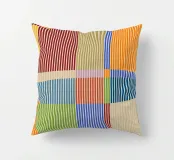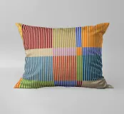 Un motivo geometrico di grande impatto, caratterizzato da sottili strisce verticali in tonalità vivaci di rosso scuro, blu, verde, rosa, giallo e arancione su un morbido sfondo beige. Questo disegno crea un dinamico effetto patchwork con un giocoso gioco di colori e un'estetica moderna di ispirazione Bauhaus. Perfetto per ravvivare l'arredamento della casa, gli accessori, l'abbigliamento e molto altro ancora, grazie al suo fascino pulito e contemporaneo e al vivace stile a righe!