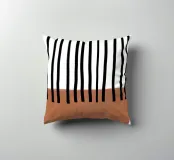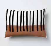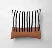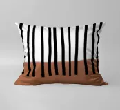 Moderno design astratto caratterizzato da linee verticali nere uniformemente distanziate che si estendono su un'area rettangolare marrone piena, creando un contrasto sorprendente e un effetto visivo dinamico.