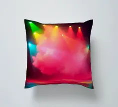 Vibranti fasci di luce colorata penetrano attraverso una nebbia, creando un'atmosfera energica in un luogo vivace durante un evento notturno, probabilmente un concerto o uno spettacolo.