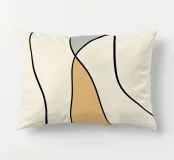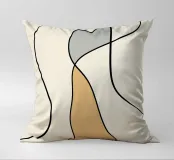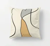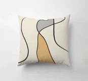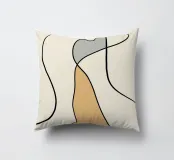 Linee e forme geometriche astratte creano una composizione minimalista dai toni neutri. Linee nere curve delineano due sezioni distinte, una riempita di grigio e l'altra di beige.