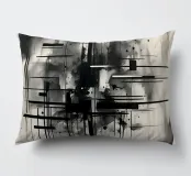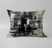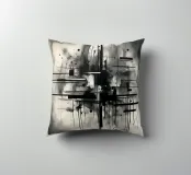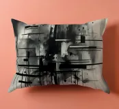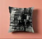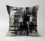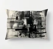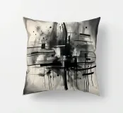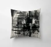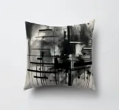 Arte astratta monocromatica - Suite di 2 pezzi intitolata Caos e Struttura - Questo è il pezzo 1 di 2. Linee nere marcate, griglie che si intersecano e schizzi d'inchiostro sparsi convergono in un'esplosione centrale di energia che attira lo spettatore verso l'interno. Strati di lavaggi grigio fumo ammorbidiscono la geometria, creando profondità e atmosfera, mentre elementi lineari nitidi impongono ordine al movimento fluido.