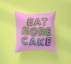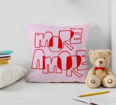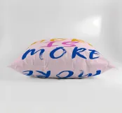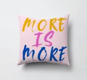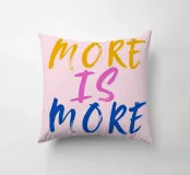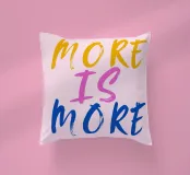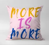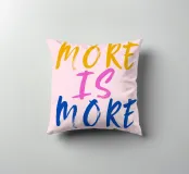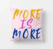 Sfondo rosa con scritte in rosa, blu e giallo: More is more.