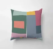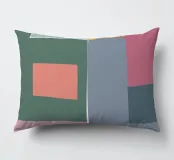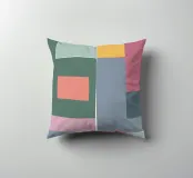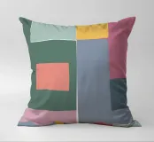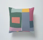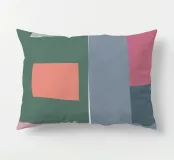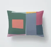 Arte astratta a blocchi di colore. Rettangoli organici con linee irregolari nei toni del verde, menta, corallo, malva, grigio e oro formano un'opera d'arte a blocchi di colore di grande effetto per interni moderni.