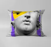 Un volto stilizzato ispirato ai busti antichi, attraversato da circuiti luminosi. Il passato incontra la tecnologia.