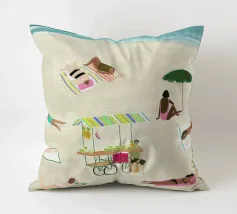 Isabelle is a Belgian artist based in Portugal. She draws inspiration from the quiet rhythm of daily life. The way light falls gently across a room, the warmth of familiar interiors, or the elegance of simple objects arranged in space. A walk through the fisherman’s town where she lives often sparks new ideas: people sunbathing, friends playing cards, and the details of everyday interiors all become sources of reflection and creation. In her studio, she reflects on these fleeting details and transforms them into compositions that honor stillness, memory, and presence. When she is not painting, she enjoys running, surfing, visiting flea markets, and exploring new places. These experiences, along with the small moments that linger in memory, weave their way into her work, creating pieces that invite others to slow down and connect with the gentle beauty of life.
