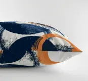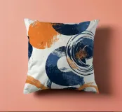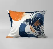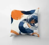 Audaci cerchi sovrapposti in blu e arancione creano un motivo dinamico su uno sfondo chiaro. I bordi ruvidi e strutturati conferiscono un senso di movimento ed energia.