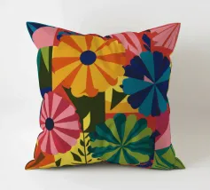 Una bella macchia di fiori selvatici stilizzati e stravaganti è illustrata in un affascinante stile ispirato all'arte popolare, con un delizioso mix di colori e forme che irradiano gioia e bellezza naturale.
