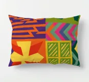 Una composizione astratta audace ed energica, caratterizzata da una griglia di motivi geometrici colorati. Il vibrante mix di forme, dai soli alle scacchiere, crea una festa visiva gioiosa e dinamica.