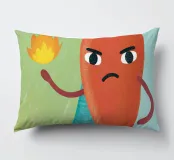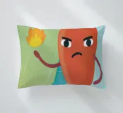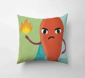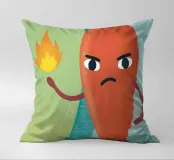 La simpatica illustrazione raffigura un peperoncino rosso con un'espressione arrabbiata e il fuoco nelle mani.