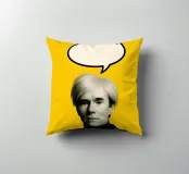 Andy Warhol, il re della pop art, in un omaggio con un colpo di scena: una bolla vocale vuota fluttua sopra la sua testa - su uno sfondo giallo brillante, combinato con allusioni colorate CMYK in ciano, magenta e nero. Tra ritratto, pop e post-ironia. Fa parte della serie Geometric Masters, che decostruisce figure artistiche iconiche utilizzando forme e colori geometrici. Forte, intelligente, moderno.
