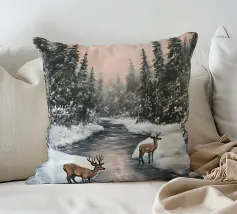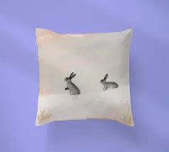 Idilliaco poster invernale con due conigli seduti in una foresta innevata. I fiocchi di neve che cadono dolcemente e i maestosi abeti creano un'atmosfera tranquilla e fiabesca. Questo murale combina motivi animali e natura invernale ed è perfetto per decorare il soggiorno, la camera da letto o la stanza dei bambini. Un'opera d'arte che porta la pace, l'intimità e la magia dell'inverno in ogni casa, ideale per gli amanti degli animali e della natura.