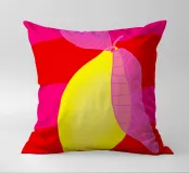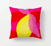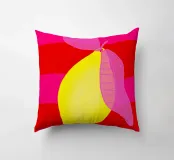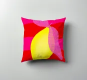 Limone minimalista su audaci onde rosse e rosa. Linee chiare, colori decisi: un design di tendenza pieno di freschezza.
