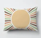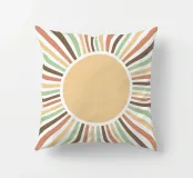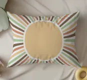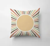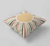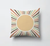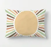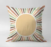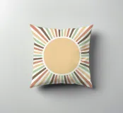 Linee radianti in tonalità terrose come il verde, il marrone e l'arancione si estendono da un cerchio centrale, creando un effetto a raggiera. Il design è caratterizzato da un'estetica retrò con motivi simmetrici e una tavolozza di colori rilassanti.