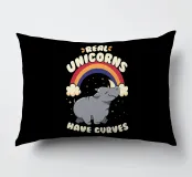 Un rinoceronte che cammina felice con un arcobaleno sullo sfondo, ornato dalla frase "I veri unicorni hanno le curve". Questo disegno con un tocco di umorismo esalta la bellezza così com'è, con le curve. Mostrate il vostro amore per i rinoceronti, gli unicorni e anche per il vostro corpo con questo grazioso disegno.