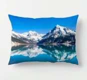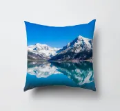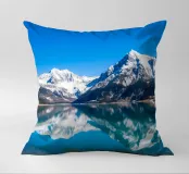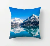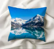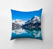Un cielo azzurro e limpido si riflette perfettamente in un lago sereno circondato da maestose montagne innevate. Questa splendida scena cattura l'essenza della bellezza e della tranquillità della natura.