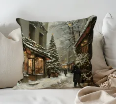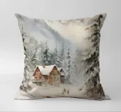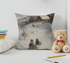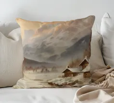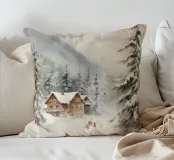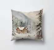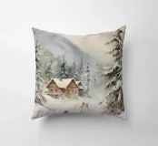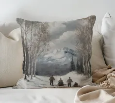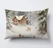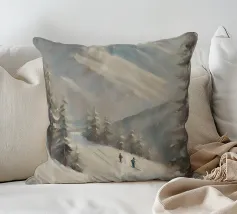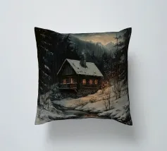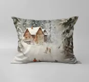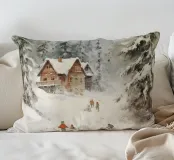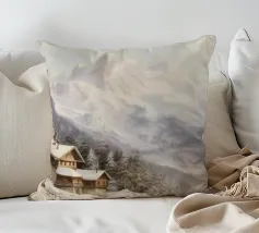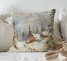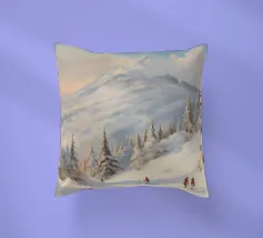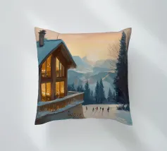 Questa suggestiva immagine invernale mostra una baita innevata circondata da maestosi abeti e cime impervie. Davanti alla baita, sciatori e bambini scivolano felici sulla neve, conferendo alla scena un'atmosfera vivace ma tranquilla. I colori tenui del cielo in contrasto con il bianco del paesaggio creano un motivo invernale armonioso e romantico, ideale per chi ama la magia della montagna. Perfetto per murales, poster, tazze, cover per cellulari, cuscini, tende da doccia e T-shirt.