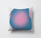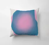 Un morbido gradiente fonde il blu e il rosa vibranti, formando forme organiche astratte e sovrapposte. Le transizioni morbide e il bagliore etereo creano una visione rilassante.