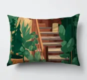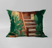 Questo dipinto raffigura una scala circondata da piante in vaso, creando un'oasi verde in un ambiente interno. La scena è rilassante e piena di bellezza naturale, e sottolinea l'armonia tra architettura e natura.