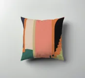Un'opera architettonica astratta incentrata su scale e piani geometrici in una calda tavolozza di rosa, arancio e terracotta. La composizione gioca con luci e ombre, creando un senso di infinita e tranquilla ascesa.