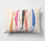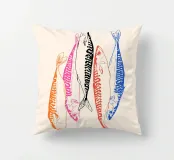 Un'illustrazione vibrante e minimalista di sgombri in una line art audace e multicolore crea un design moderno e artistico ispirato ai frutti di mare, perfetto per decorazioni, stampe e estetica a tema marino.