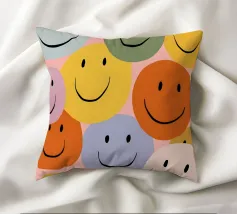 Il motivo colorato Faccine sorridenti è un semplice ma accattivante motivo luminoso nei colori rosa, arancione, giallo e rosso. Presenta molte facce sorridenti che mettono di buon umore. Motivo felice e ottimista ispirato allo stile retrò anni '70 di showmemars