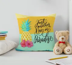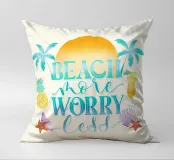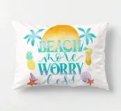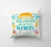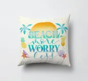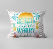 Siete pronti per una vacanza e avete voglia di sole, mare e spiaggia. Allora questo motivo con alba, palme, cocktail rinfrescanti, ananas fresco e conchiglie è proprio quello che fa per voi. Detto umoristico per l'estate. Concedetevi più spiaggia e preoccupatevi di meno.