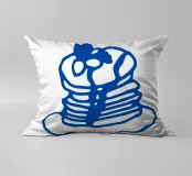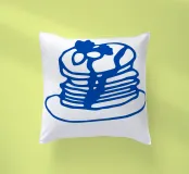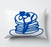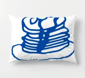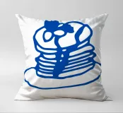 Una pila di pancake conditi con sciroppo e una guarnizione è rappresentata in uno stile minimalista di line art blu. Il design enfatizza la semplicità e le immagini a tema colazione.