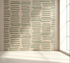 Create un'atmosfera serena e moderna con questo motivo organico a righe pennellate in una morbida tonalità verde salvia. Ispirato alle texture dipinte a mano, questo disegno boho minimalista è perfetto per gli interni scandi-modern, japandi e ispirati alla natura. Utilizzata come wall art, tessuto o carta da parati, questa rilassante stampa a righe aggiunge un'eleganza terrena a qualsiasi spazio, rendendola ideale per l'arredamento di case tranquille, nursery o rifugi accoglienti.