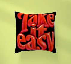Un vivace disegno tipografico in stile retrò con la frase "Take It Easy" in grassetto, con caratteri ispirati agli anni '70. Il caldo mix di rosso, blu e verde menta con accenti di stelle aggiunge un'atmosfera giocosa e nostalgica, perfetta per un'estetica rilassata ed elegante. Un pezzo elegante e nostalgico che irradia calma e gioia. Creato da showmemars