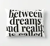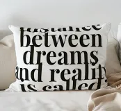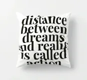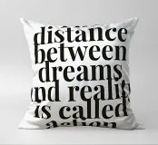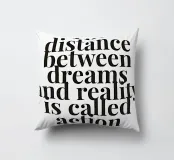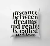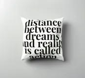 "Le parole 'La distanza tra i sogni e la realtà si chiama azione' sono disposte in un layout tipografico di grande impatto visivo, che sottolinea il potere di agire per raggiungere gli obiettivi. Il testo è audace e d'impatto, su uno sfondo pulito e minimalista, che crea un senso di motivazione e determinazione",