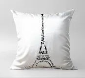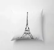 Il famoso simbolo di Parigi, la Torre Eiffel, in un design molto moderno. Lavoro artistico con elementi tipografici.