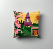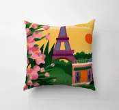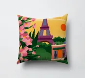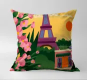 Questa immagine ritrae la Torre Eiffel al tramonto, con fiori rosa in primo piano. La scena è pittoresca e romantica e cattura l'iconico punto di riferimento in una luce meravigliosa.