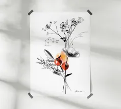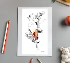 Quando in autunno sbocciano gli ultimi fiori, la rosa canina risplende e l'erba si affievolisce, gli uccelli si dirigono verso sud. Decorate la vostra stanza con questa illustrazione minimalista del nostro mondo naturale e del fascino moderno.