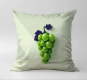 Un grappolo d'uva di un verde intenso poggia su uno sfondo chiaro, illuminato da una luce delicata che ne mette in risalto la consistenza lucida e le ombre sottili.