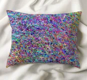 Questo dipinto di design grafico astratto combina scarabocchi surreali con linee di flusso dinamiche e colori audaci in rosso, giallo, blu, bianco, rosa e verde. Ispirata all'espressionismo e alle tecniche di action painting, l'opera trasmette movimento e profondità. Le texture complesse e i motivi ramificati ne fanno un'affascinante opera d'arte moderna.