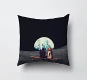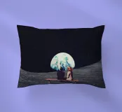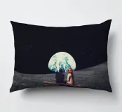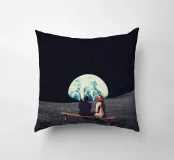 Vivevamo lì. Ricordate? Quel mondo ci sta ancora aspettando. ~ Coppia seduta su una panchina che guarda la Terra surreale retro futuristico stellato composizione romantica. versione orizzontale