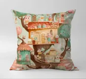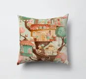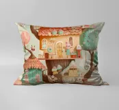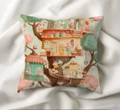 Una magica illustrazione verticale di un'accogliente pasticceria sull'albero immersa tra alberi color pastello. Ogni livello è popolato da affascinanti personaggi animali che preparano cupcake, impilano pasticcini e sorseggiano cioccolata. Con i suoi tetti di pan di zenzero, i dettagli giocosi e la calda tavolozza di toni menta, fard e miele, questa scena sembra un dolce sogno. Perfetto per le camere dei bambini, le pareti delle camerette o per chiunque ami un tocco di fantasia commestibile e di dolcezza.