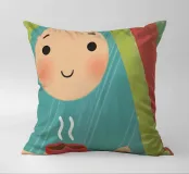 Un'illustrazione rasserenante che raffigura una persona dal sorriso gentile con in mano una tazza di caffè caldo.