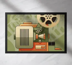 A stylized illustration of a camera suspended in the sky, perfect for photography-related designs.