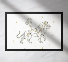 Questo disegno rappresenta il segno zodiacale dei Gemelli, simboleggiato da due gemelli in equilibrio e armonia. Con una composizione circolare, l'immagine gioca su elementi geometrici e punti stilizzati che evocano la dualità e la versatilità di questo segno. Le linee e i dettagli centrali sono equilibrati, suggerendo il legame tra le due personalità gemelle, mentre la disposizione dei punti intorno al cerchio enfatizza l'idea del movimento e del continuo cambiamento, tratti tipici dei Gemelli. Il design minimalista con contrasto bianco e nero lo rende elegante e facilmente adattabile a diversi stili di arredamento.