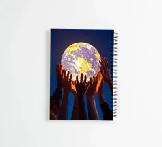 Un gruppo di persone sostiene idealmente la terra per salvarla dalla deriva.