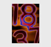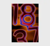 Questo intenso poster fonde estetica glitch, tipografia infuocata e una palette di colori vibranti. I numeri, distorti e aureolati in rosso, arancione, blu elettrico e nero profondo, sembrano fluttuare in uno spazio astratto e saturo di calore visivo.
