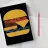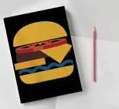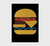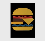 Illustrazione geometrica minimalista di hamburger su sfondo nero.