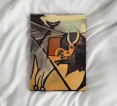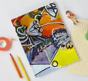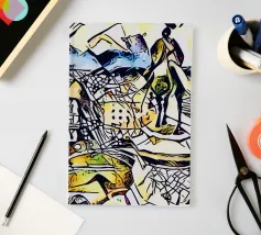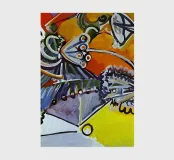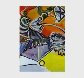 Questo dipinto astratto vibrante ed energico presenta un gioco dinamico di forme frammentate e linee audaci, con una ricca tavolozza di arancioni, gialli, viola e blu. La composizione suggerisce elementi decostruiti, forse figure o oggetti, in un movimento vorticoso ed energico, caratteristico delle influenze cubiste ed espressioniste astratte. I dettagli intricati e i colori contrastanti creano un'esperienza visiva accattivante e stimolante. Questo poster digitale di alta qualità (7000x5000 pixel, 300 dpi) cattura magnificamente l'energia grezza e il genio artistico dell'originale, ma