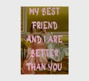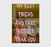 Celebrate il vostro legame indissolubile con "My Best Friend and I Are Better Than You", una spiritosa stampa pop art che unisce l'eleganza classica a una moderna e giocosa dichiarazione di amicizia. Questa accattivante opera d'arte raffigura due serene figure storiche, elegantemente posate su un lussuoso divano, apparentemente impegnate in un libro. Il testo in grassetto, di colore rosa caldo, "IL MIO MIGLIOR AMICO ED IO SONO MEGLIO DI TE" si sovrappone all'immagine, trasformando la scena senza tempo in un'ironica e sicura dichiarazione di esclusività. Perfetto per aggiungere personalità e un tocco di fascino spensierato a qualsiasi spazio contemporaneo. Realizzato ad un