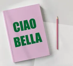 scritta ciao ciao ciao su motivo a quadri color pistacchio.